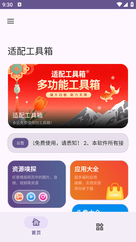 适配工具箱作为一款多功能宝藏工具箱应用,里面集合了各种有用的小工具,还有超多福利应用,这些工具和应用基本上可以覆盖你生活中的方方面面,满足你的日常生活工作需求,可以为你带来很多便利。工具箱完全是免费的,并且里面还没有任何广告,非常干净纯粹。