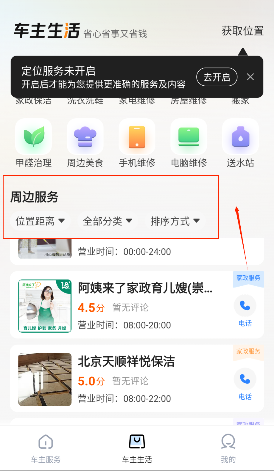 3、周边生活资源整合,智能基于位置推荐美食、家政及洗衣等服务,一站式解决日常需求,助用户享受高品质便利生活。