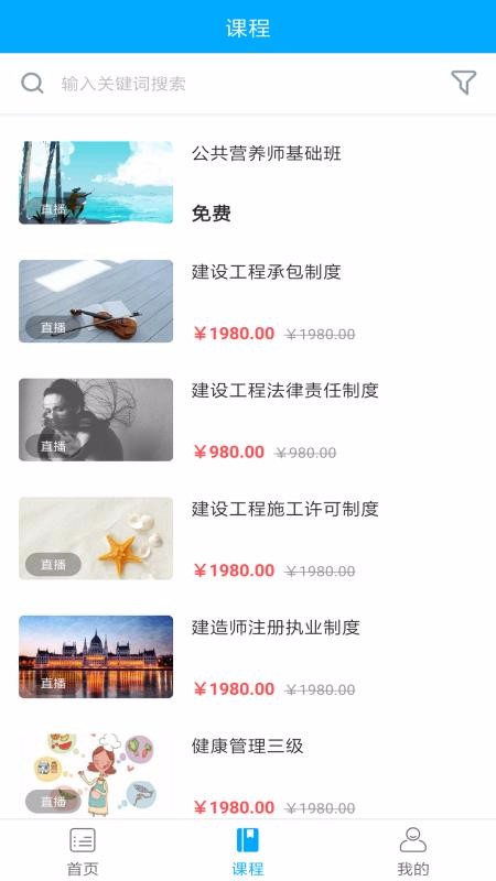 1、可以看到各种丰富的课程列表数据,课程中心显示所有课程列表的价格信息。
