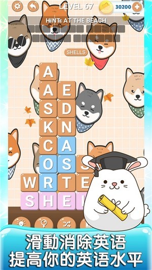 2、可爱的令人费解的英文游戏,滑动消除了英文单词以及单词拼写过关。