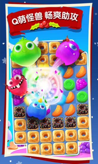 2、独创的以怪物为主的玩法,消除糖果给怪物充电,趣味的玩法设计还是很不错的。