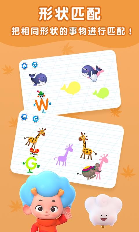 1、拥有多种学习方式,设计了动物形状匹配、气球词和泡泡词匹配,以及文字描述。