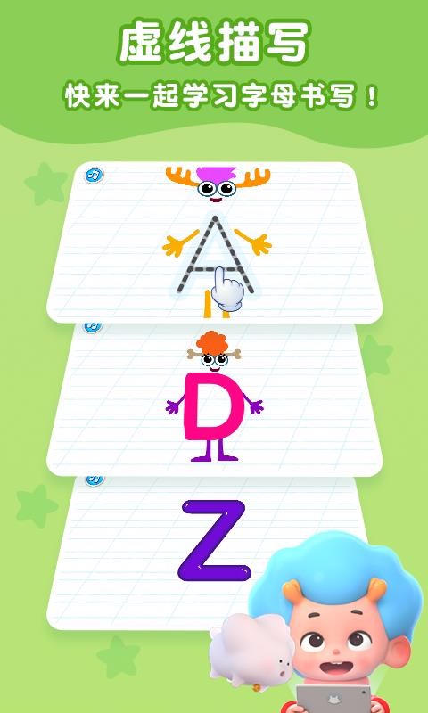 《字母启蒙地》是为宝宝们设计的字母学习软件,软件上的学习资料非常简单易懂,它使用各种字母卡来帮助婴儿学习字母。在这个应用程序中,将26个英文字母的不同形状结合相应的思维,找到与每个字母兼容的单词。与字母匹配的日常用品信息,让宝宝在学习字母时,可以将对应的字母与对应的图形进行匹配,从而加深宝宝对字母的记忆。
