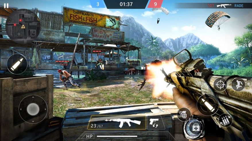 2、都市生存枪战游戏伟大的真实地图场景,自由战斗,完成任务并获胜。