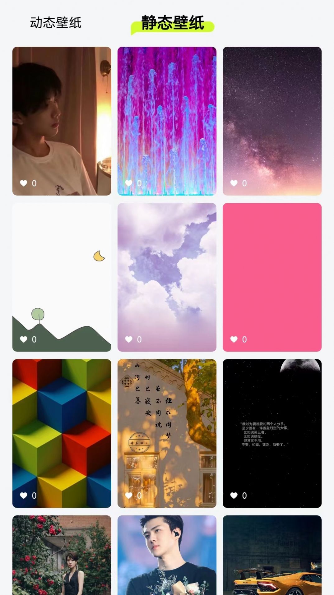 1、全民壁纸软件内的壁纸种类是很多,动漫、二次元、风景等。