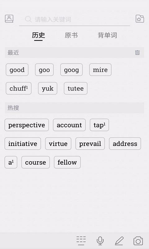 1、新牛津英汉双解大词典设置多种查询方式,为用户提供手动输入功能及以下语音输入图标。
