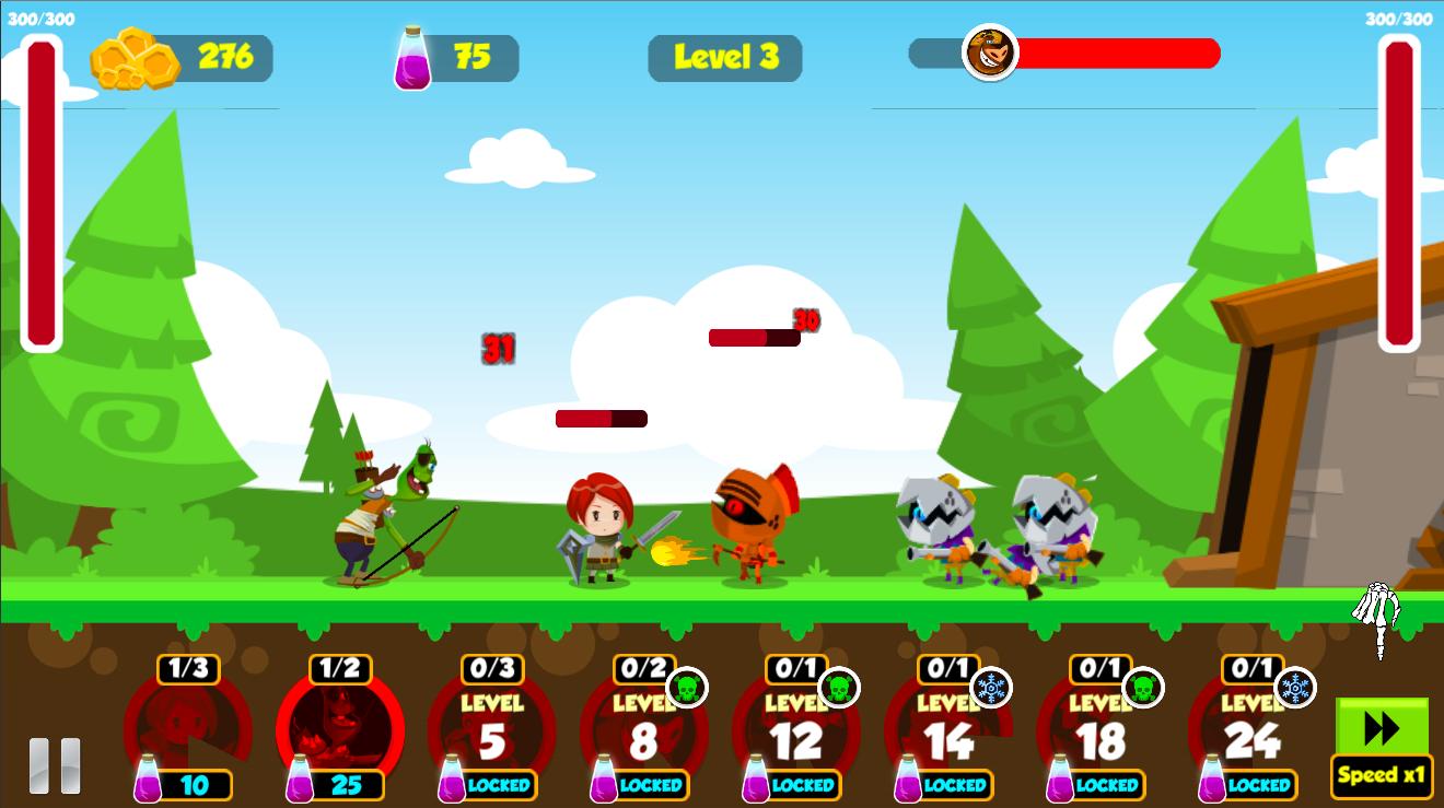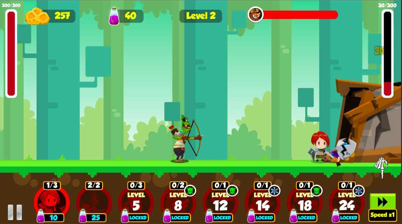 1、城堡冲刺防御里面不同英雄的服装和武器可以随意改变,在游戏里面你会玩的很开心的。