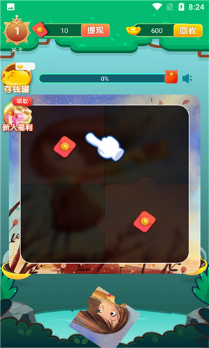 《红包拼图王》玩家是要在关卡里将更多的拼图给完成,里面每个关卡里都是碎片,玩家要自己去里面完成。玩家在完成一定拼图后是有机会获得红包的,只要红包够多就能提现哦。游戏的拼图难度会一点一点的提高,玩家要好好挑战,考验还是很大的。