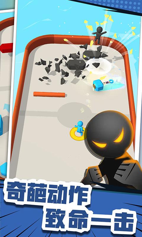 1、火柴人:全民打砖块提供趣味的乱斗过程,玩家可以不断摧毁不同的砖块对战