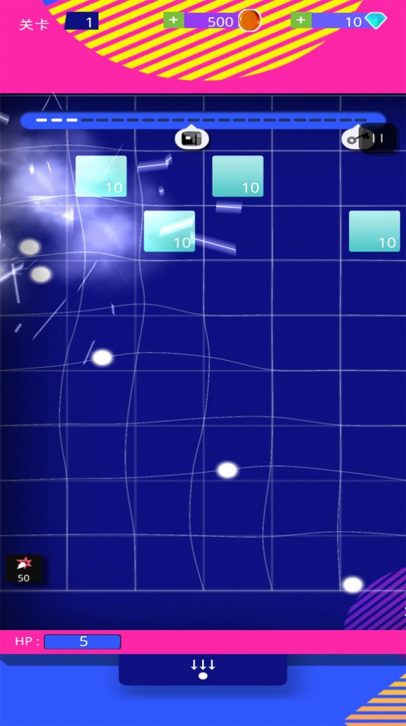 1、游戏里小白球从数字方块上弹起,而且玩家每次弹起消除都是有分数的。