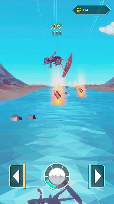 1、喷射冲浪里面的操作非常简单,玩家可以灵活控制移动,操作越简单,越容易上手。
