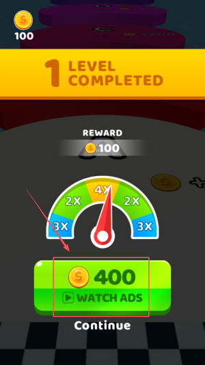 4、如何领取奖励?完成关卡后点击“LEVEL COMPLETED”界面中的奖励图标,观看广告可翻倍领取奖励。