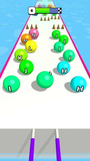3、避障碍达终点:遇到障碍物时,确保字母球已合并到足够大小,再操控球顺利越过,避免因球体积过小被障碍阻挡,影响通关进度。
