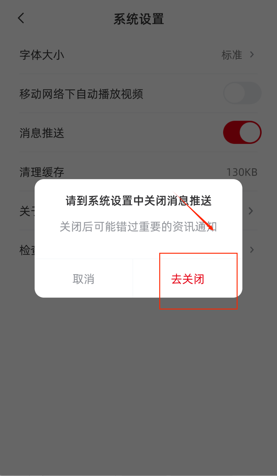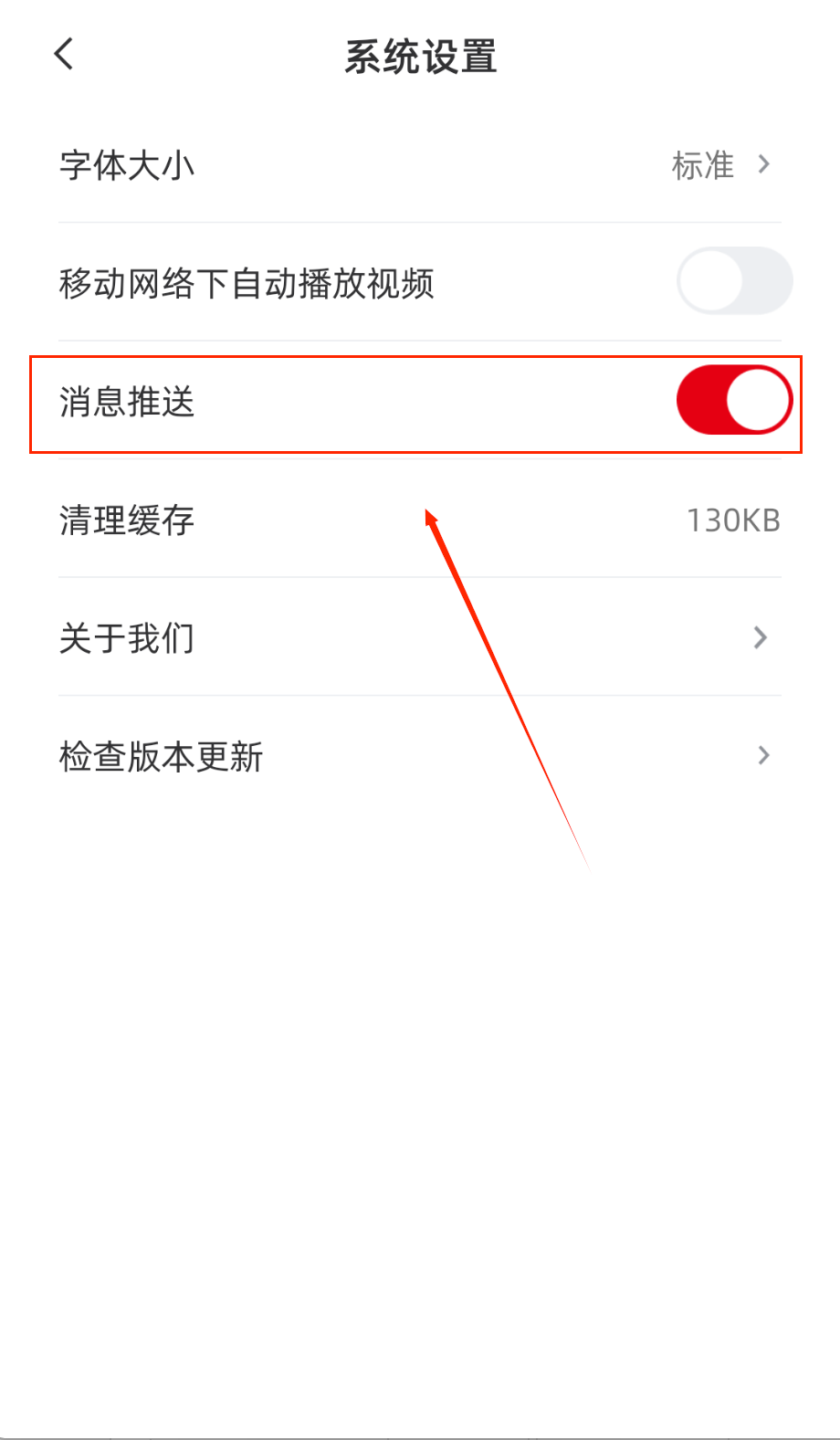 4、若需关闭通知,则将消息推送旁的开关向左滑动至灰显状态,即可成功禁用推送提醒,避免不必要的打扰。