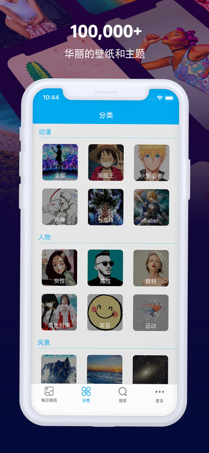 2、在这里你可以选择多种不同类型的壁纸进行使用,无论是人物、风景、动画、豪车、宠物壁纸类型。