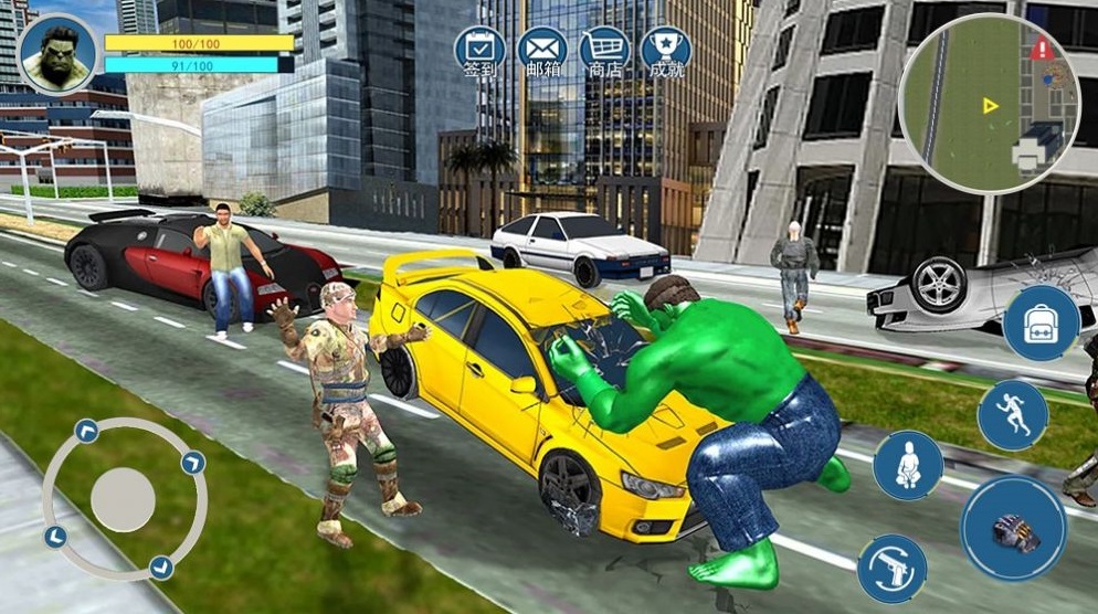 1、绿巨人的冒险已经开始了!在城市巨人大破坏里面,强大的绿巨人来维持城市的和平。