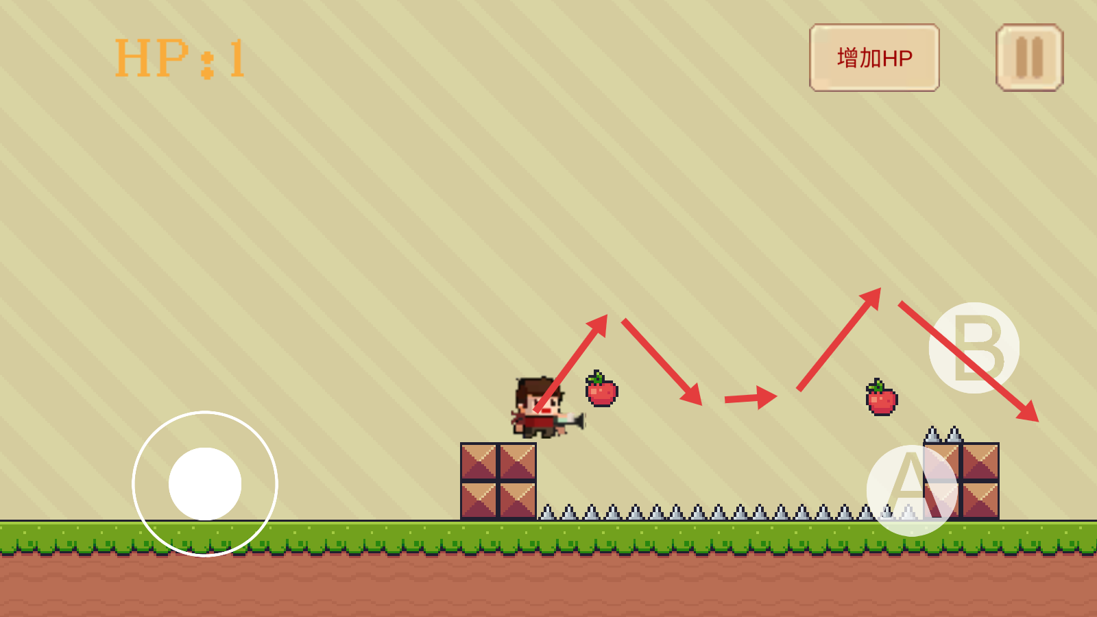 3、闯关时瞄准苹果类道具收集,同时避开尖刺等陷阱,规划移动和射击的轨迹,保障安全。