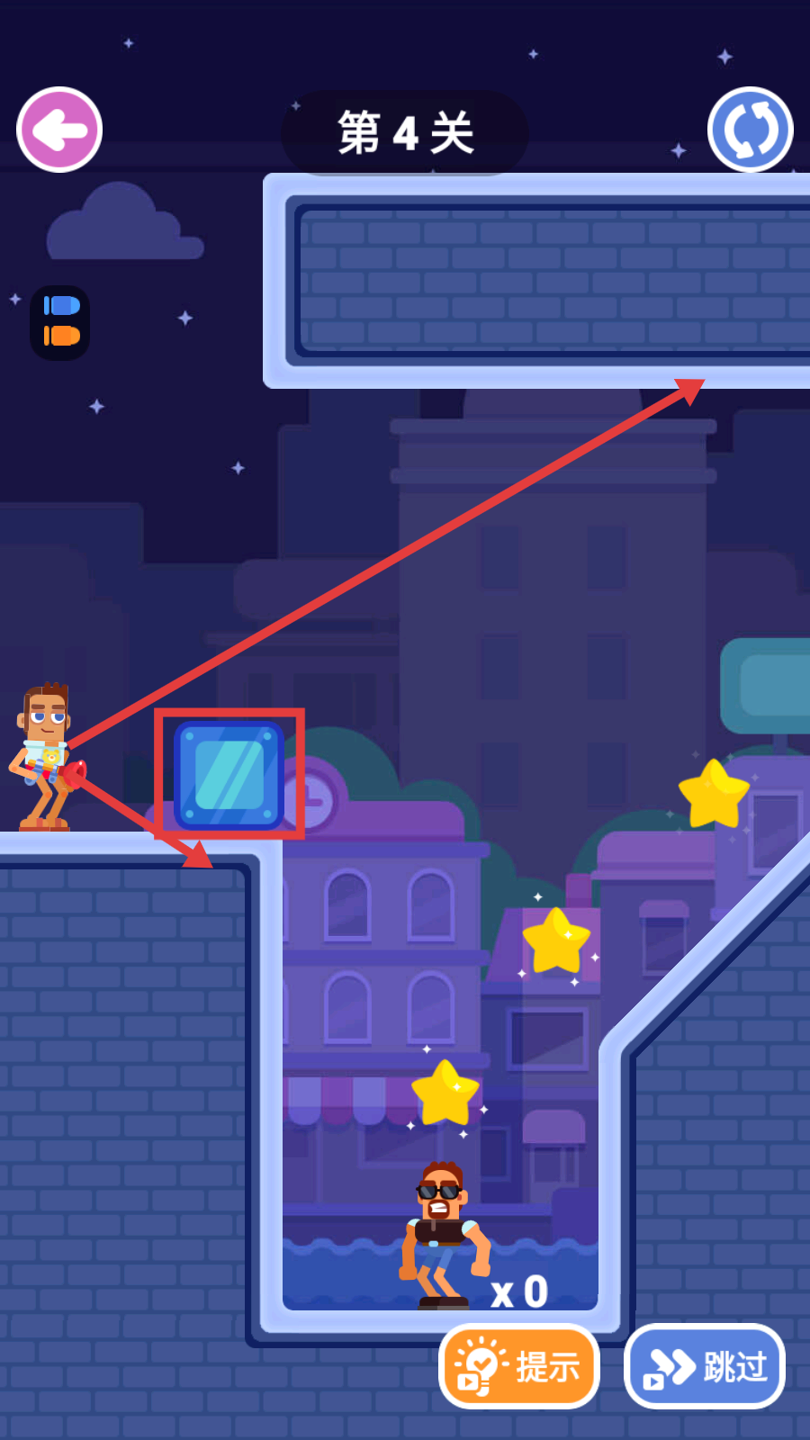 2、在第4关,仔细观察场景,把蓝色的传送门放置到墙边的合适位置,搭建传送的起始点。
