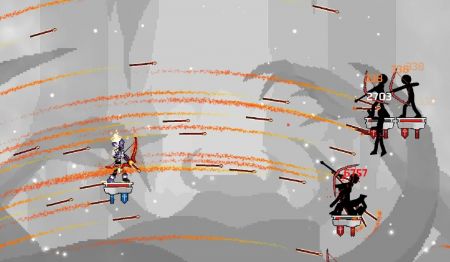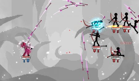 - 一款以像素风格设计的火柴人射击对抗类作品