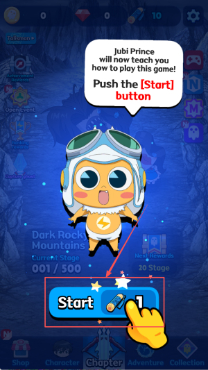 2、如何开始教程?点击“Start”按钮,开始由Jubi Prince引导的游戏教程。