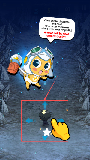 3、如何控制角色?点击并按住角色,角色会跟随你的指尖移动,同时箭会自动射出。