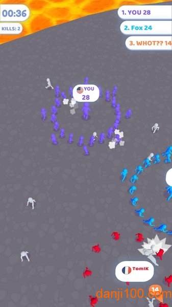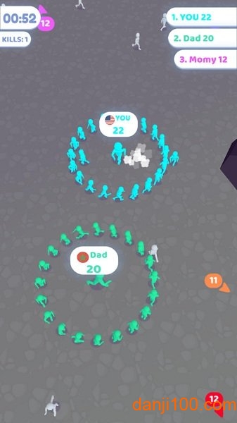 3、留意右上角排名,当遇到人数少的队伍如【Crazy】时,指挥【YOU】的人群发起攻击,抢夺对方人数。