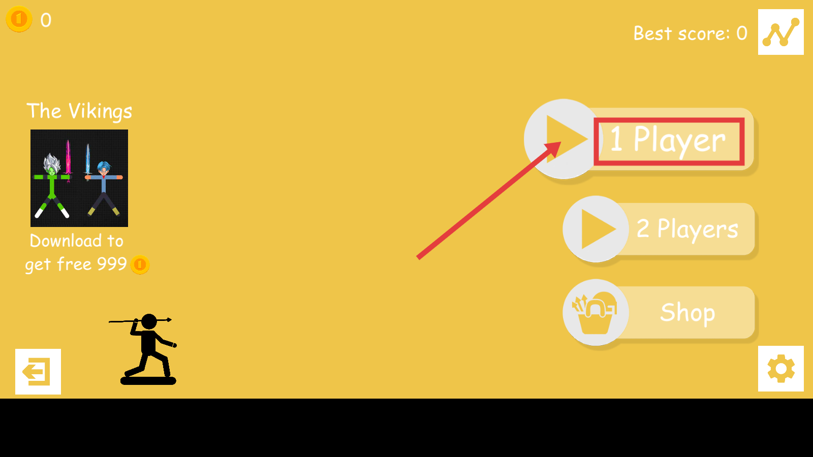 1、点击【1-Player】选项,进入单人游戏模式,开启火柴人射箭的挑战之旅。