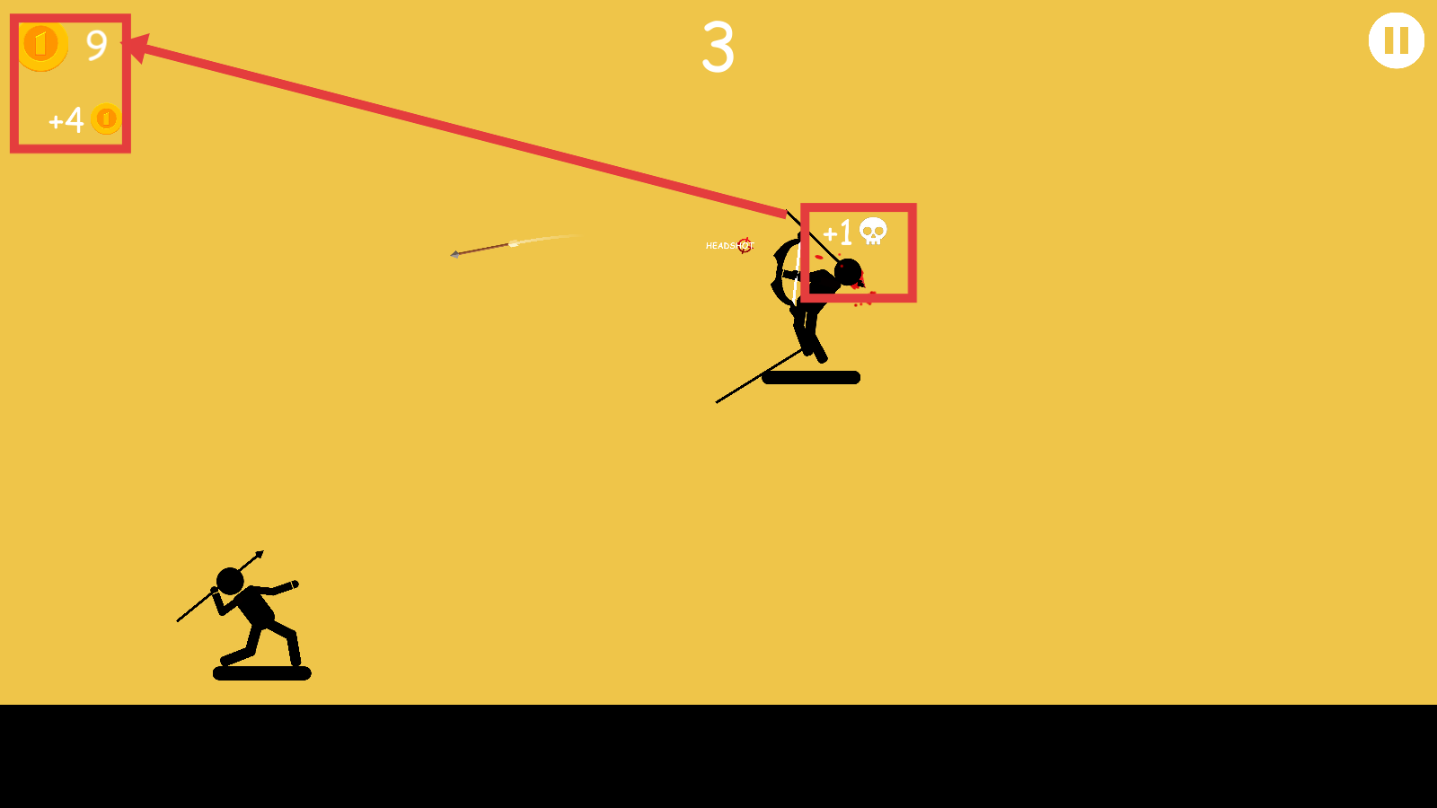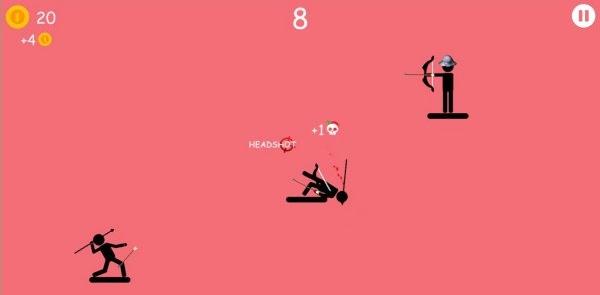 3、成功击中敌方弓箭手时,能获得【+4-金币】与【+1-击杀计数】,积累资源和分数。