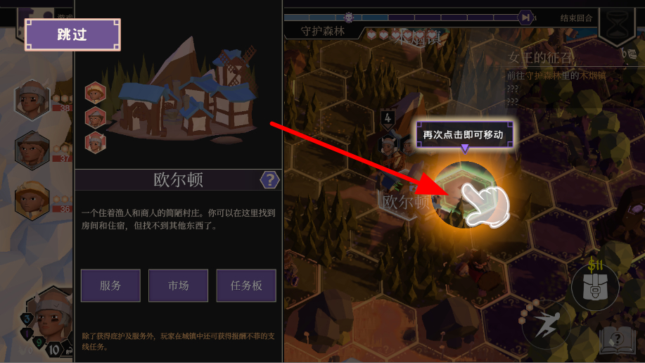 3、操控角色移动,按照提示点击目标位置,角色便会前往,通过移动能探索不同区域,发现新的地点与任务,推进冒险进程。