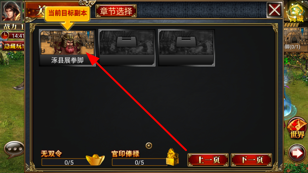 3、新人玩家可选择副本进行挑战,像涿县展拳脚副本,进入副本后与其中的敌人战斗,通过战斗能提升角色等级、获取装备奖励等。
