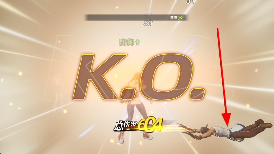 4、玩家操作角色持续的使用技能和普攻、重拳攻击对手,消耗对手的血量,最终将对手击败,达成KO,获得战斗胜利。