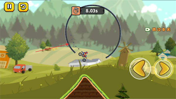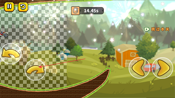 3、遇到环形等特殊地形时,利用前进按钮保持摩托平衡和速度,避免翻车或掉落。