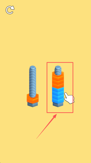 3、逐序移动螺母:按规划逻辑,点击并拖动螺母,将同色螺母逐步归置到对应区域,过程中合理利用有限工具辅助排序。