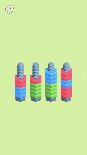 4、完成排序验证:所有螺母按颜色分类排序后,完成当前关卡挑战,解锁难度更高的新关卡,持续锻炼逻辑思维。