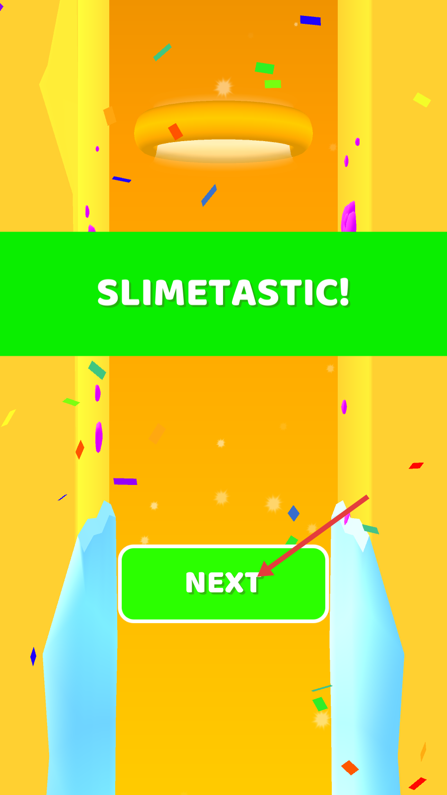 4、通关LEVEL6后,界面显示“SLIMETASTIC!”,点击绿色的“NEXT”按钮,即可挑战下一关。