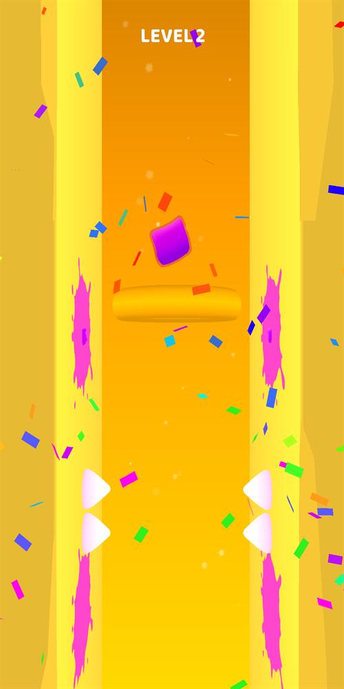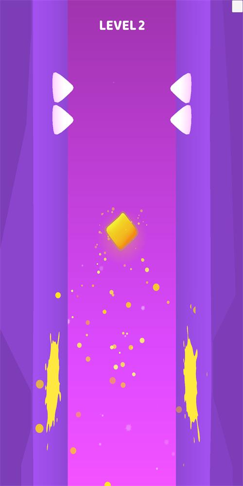 2、操控紫色方块,沿着箭头方向向上移动,收集一列的金色螺旋道具,积累关卡资源。
