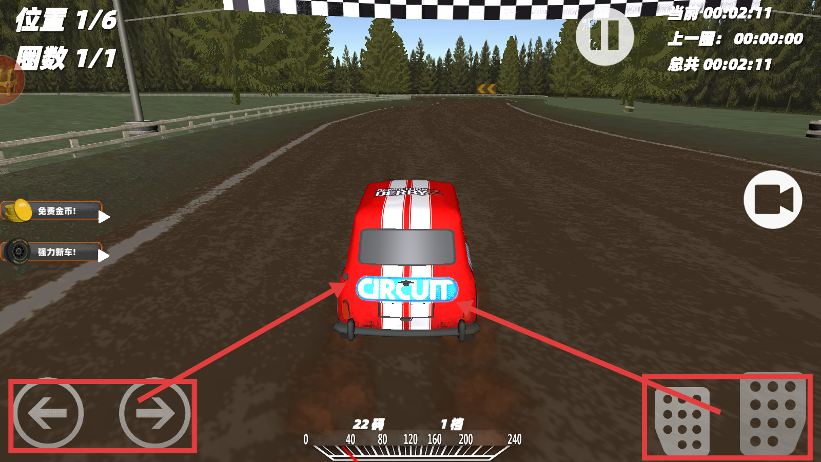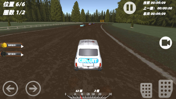2、比赛时,通过左侧左右方向键控制赛车转向,右侧踏板控制赛车的加速与减速,操控赛车在赛道行驶。