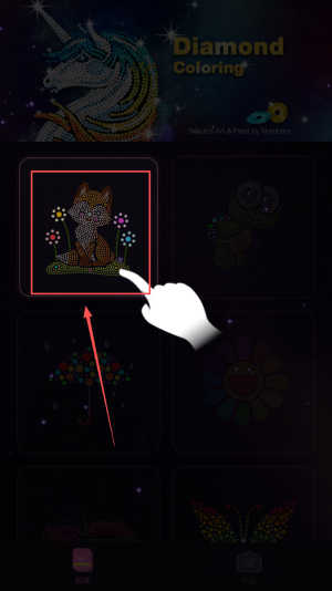 1、开启创作之旅:进入游戏选择喜爱的图画,明确 “根据提示填充不同颜色水钻、完成钻石贴画” 目标,熟悉水钻选择与填充操作。