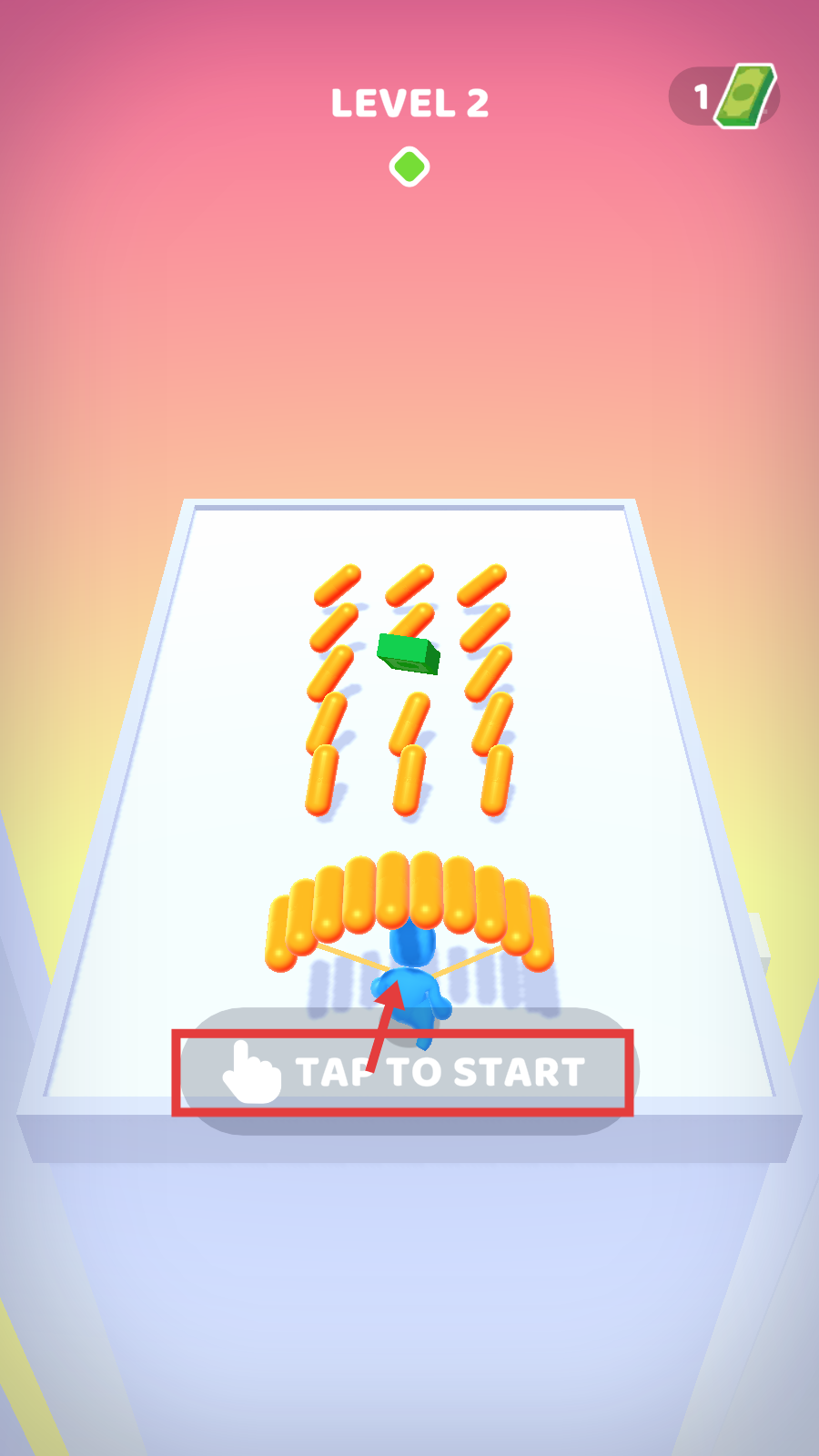 1、在【LEVEL2】关卡,点击【TAPTOSTART】按钮,让蓝色角色带着黄色部件开启前进,准备应对路径元素。