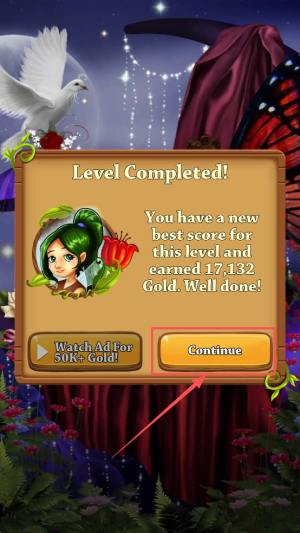 4、最后,完成关卡后点击“Continue”按钮继续游戏或观看广告以获取额外金币。