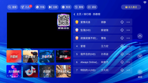 蓝调KTV作为一款可以轻松实现歌厅KTV点歌服务的软件,它在手机、平板、电视端都通用,可以完美适配安装使用。软件的功能非常齐全,该有的功能都有,添加歌曲到列表、切歌、换歌、调音、暂停、伴唱等等功能都有,让你轻松操作点歌k歌。