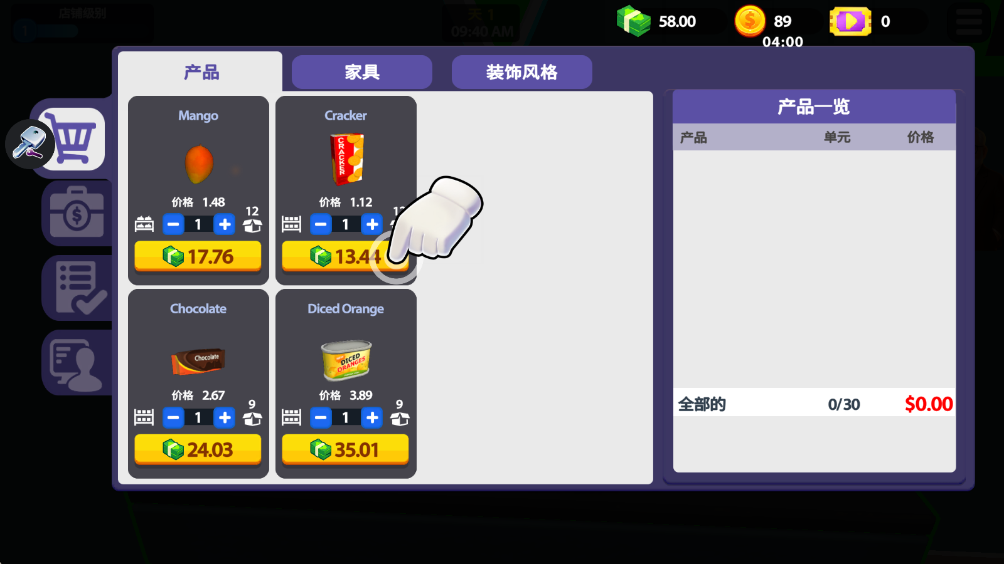 1.玩家可以提升工作效率和顾客满意度,让自己的店铺营业收入变得更多,购买更多的新商品也可以提升商店的客流量。
