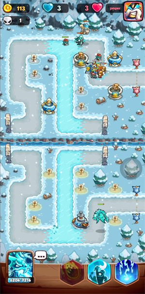 7、在游戏主界面点击下方第一个按钮可以更换上阵的英雄、防御塔和使用的法术。