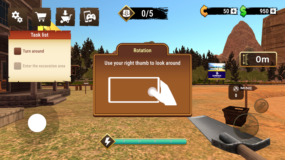西部牛仔淘金热是一款充满冒险与策略的沙盒模拟经营游戏,你将进入一个广阔的开放世界,开始你的淘金生涯,探索富饶的土地,挖掘黄金和宝藏,并通过精密的工艺加工,将这些财富转化为巨大的利润。每一块矿石都可能藏有金、银甚至钻石等珍贵宝物,但真正的挑战在于如何精确地处理这些矿石。你需要将矿石经过水流冲洗、淘金盘筛分等多个步骤,才能从中提取出最纯净的金块和宝石。