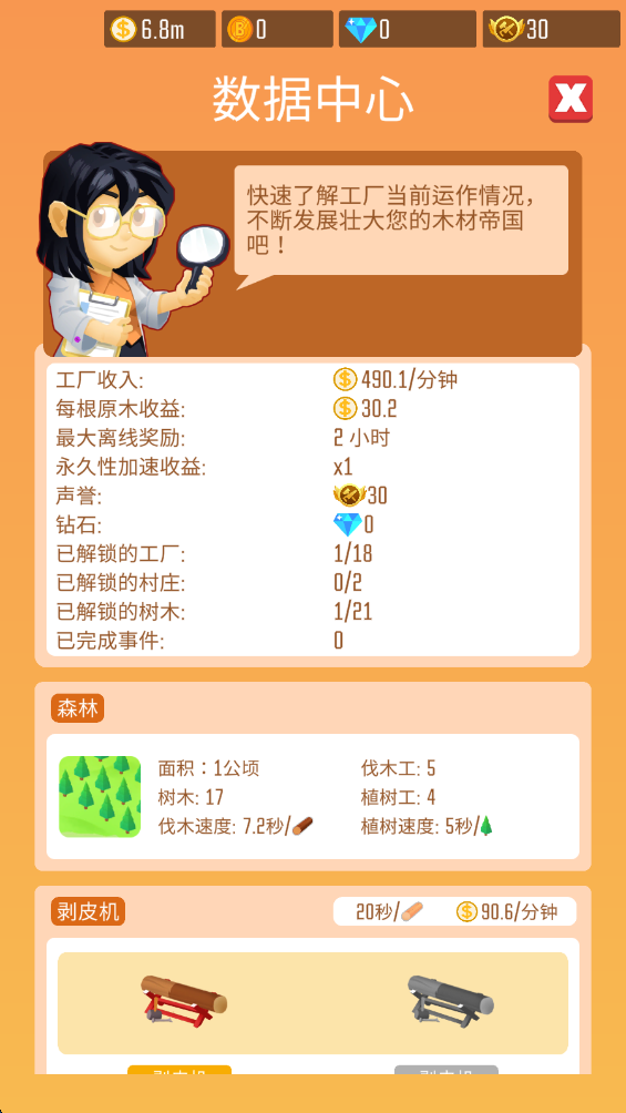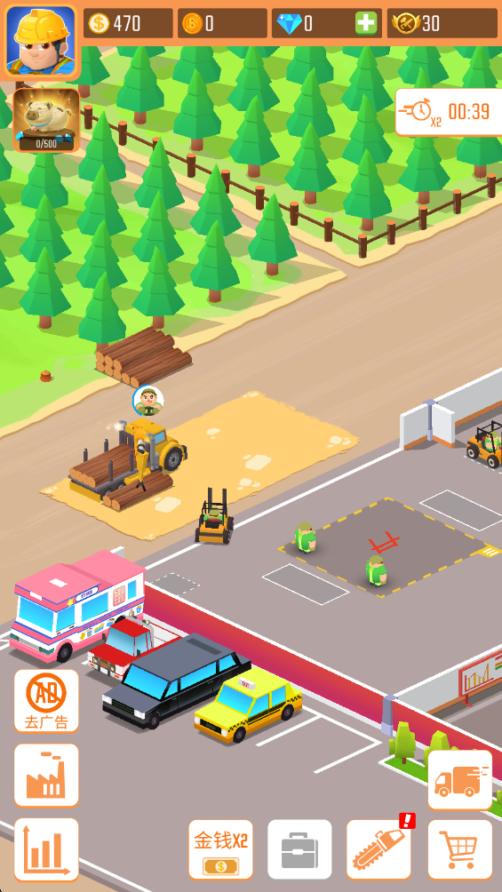 木材闲置帝国是一款集经营管理与策略思维于一身的放置类商业游戏,你将从一个小规模的木材加工厂起步,逐步扩展你的产业,最终打造出一个庞大的木材加工王国。市场需求不断变化,你必须根据市场走势调整生产计划,以最大化你的利润。通过巧妙的投资与经营,你可以解锁新的设备和技术,提高工厂的生产效率,甚至开发新的产品线,提升竞争力。
