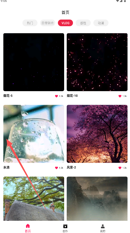 6、完整以上编辑操作以后,在创作区可点击查看刚才你所完成的视频编辑创作。