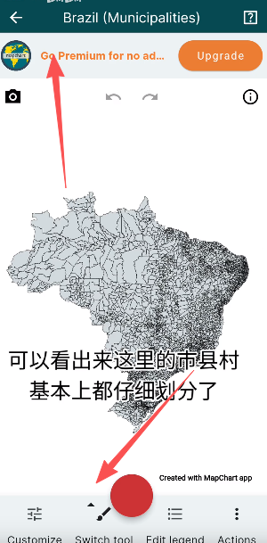 1、打开MapChart app,点击creat map选择像编辑的地区或者城市地图。