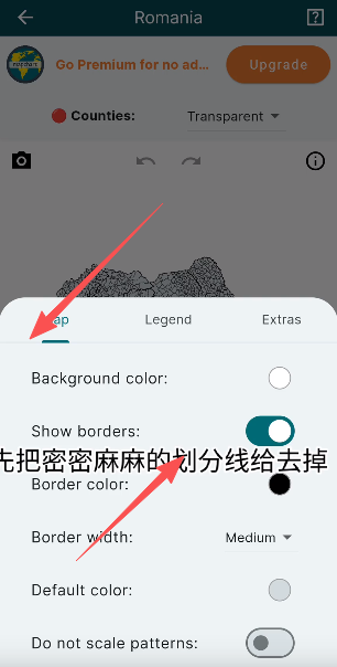 4、接着你要做的,就是把下方设置列表打开,将地图上可见的线条全部去除,从而得到完整的架空地图。