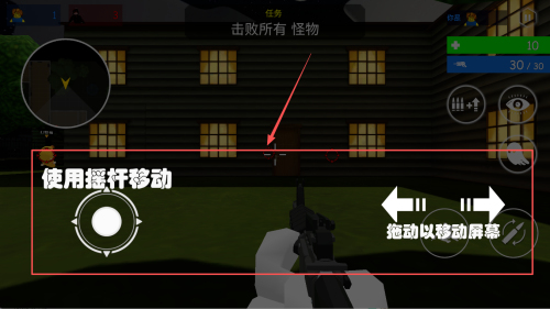 2、如何移动角色?使用左下角的虚拟摇杆控制角色移动。