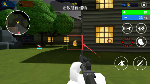 1、持武器战怪物:拿起手中武器瞄准出现的怪物射击,根据怪物类型调整攻击策略,灵活的怪物快速锁定,避免被偷袭。